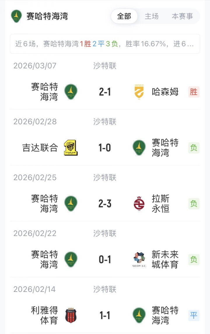3月15日讯 沙特联第26轮,赛哈特海湾主场迎战利雅得胜利,赛前首发名单公布。